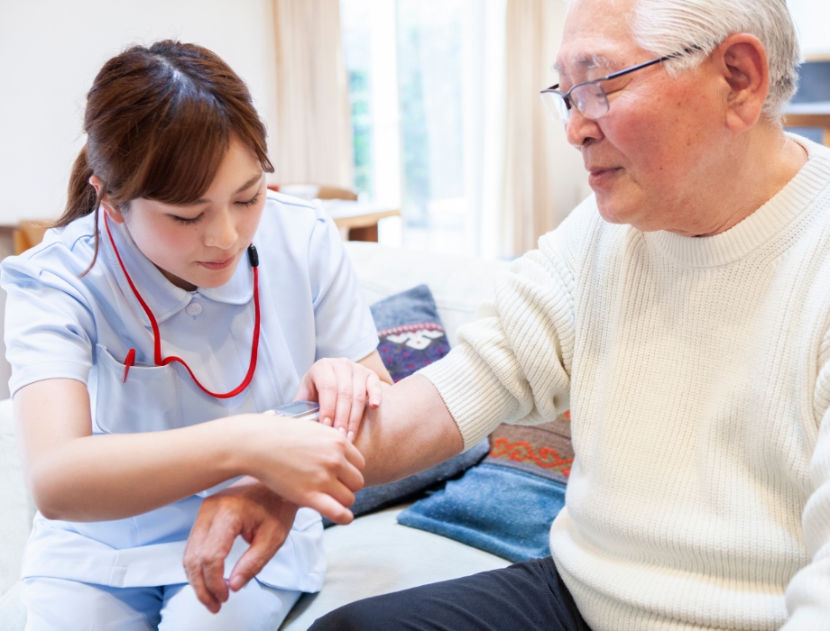 褥瘡の予防と処置、留置カテーテルの管理や主治医の指示に基づいて、点滴や注射などの医療行為が受けられます。